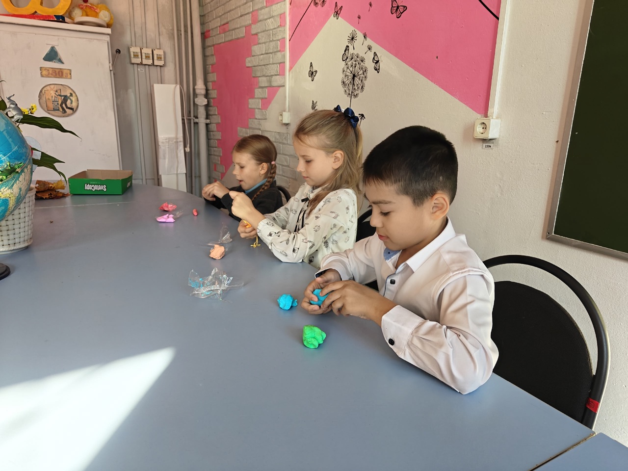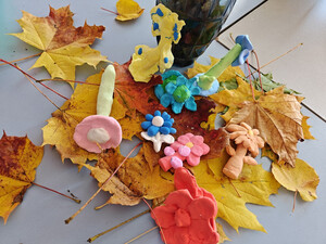 Мы начали с увлекательной игры — угадывали цвета осени, обсуждая, какие оттенки могут быть у листьев, цветов и плодов. Затем, вдохновившись яркими образами, дети перешли к творческому процессу. С помощью пластилина они создавали свои уникальные осенние цветочки, проявляя фантазию и креативность.