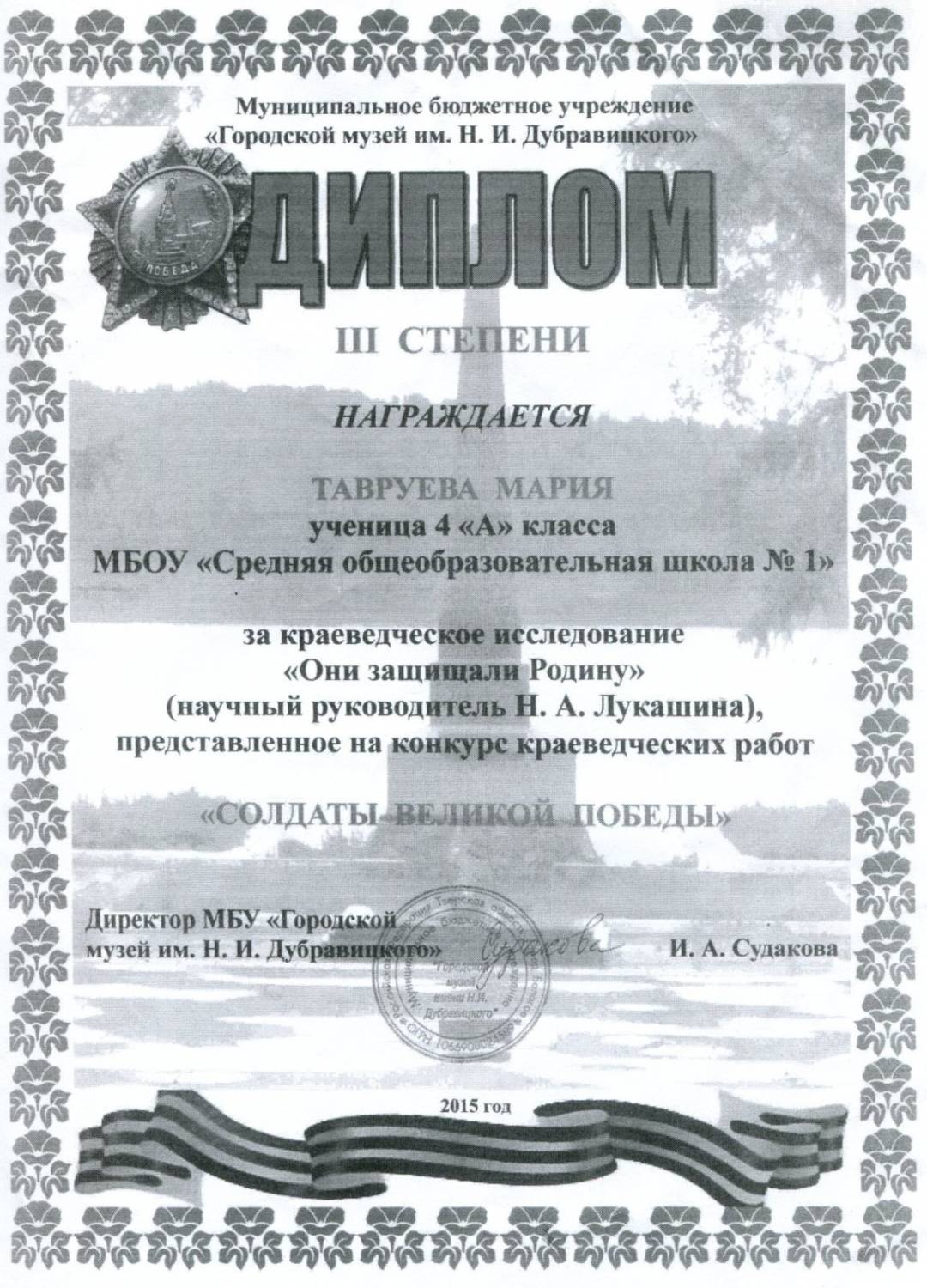 Тавруева Мария. «Они защищали Родину». Руководитель: Лукашина Наталья Анатольена.