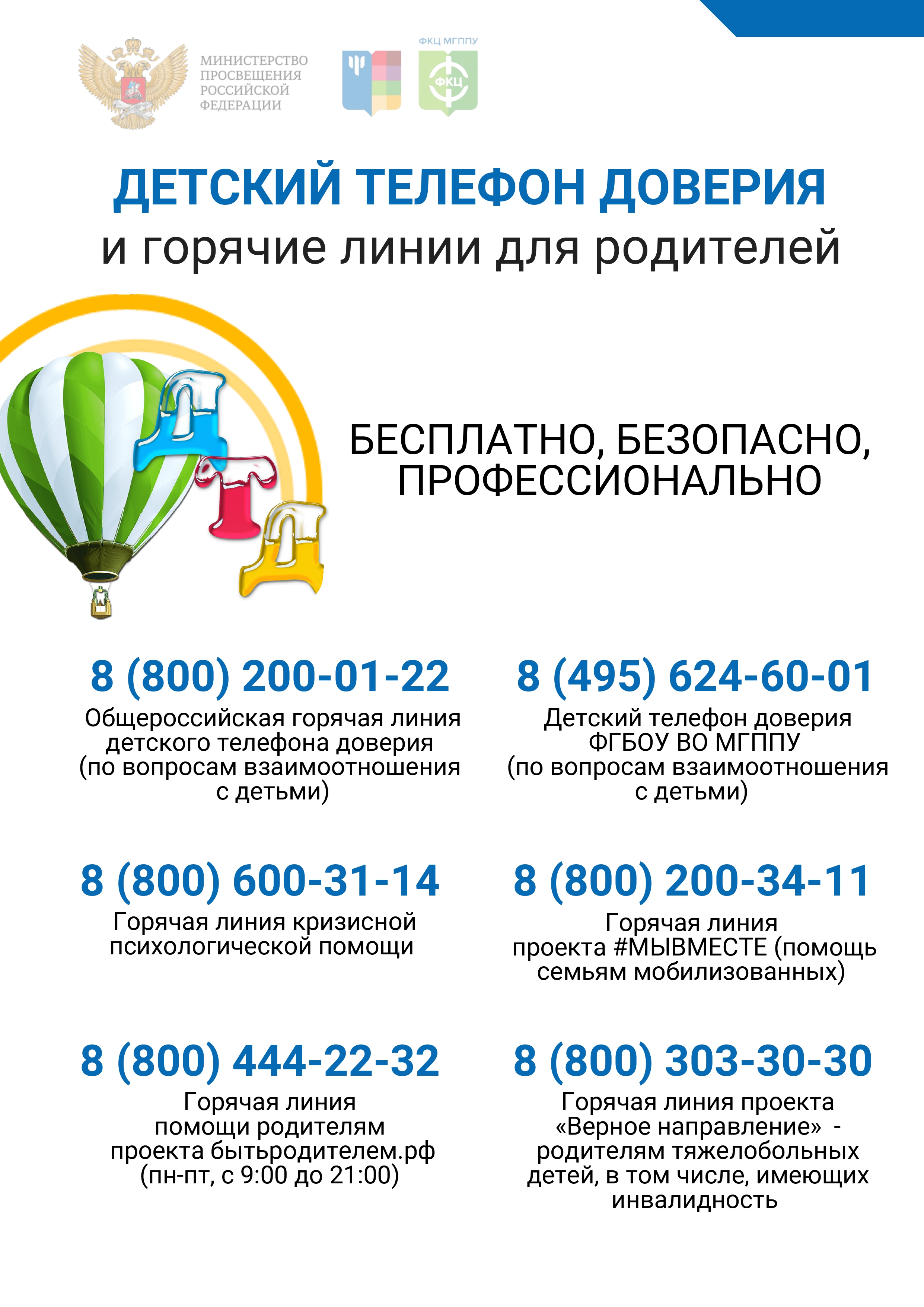 Телефон доверия для родителей                      Телефон доверия для детей и подростков