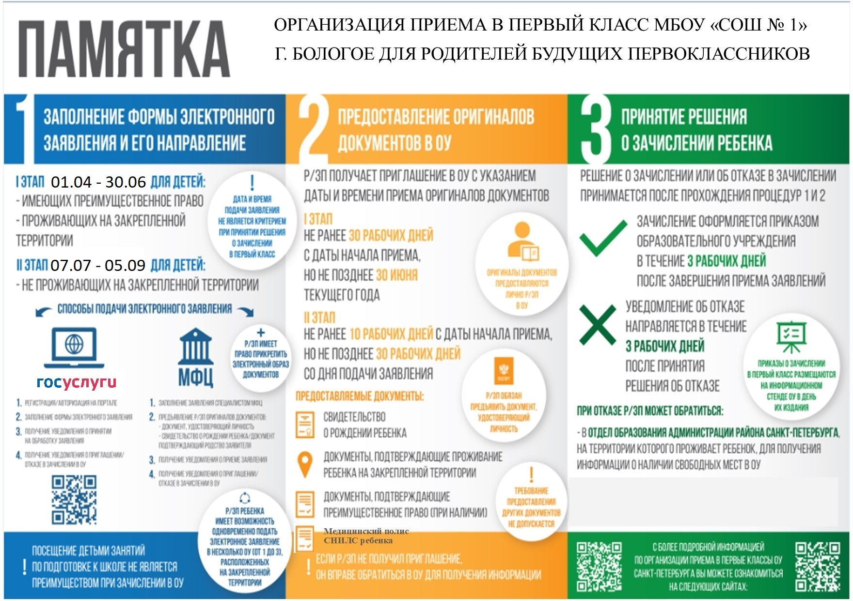 - Приказом директора МБОУ «СОШ № 1», г. Бологое, Тверской области от 26.03.2025 г. № 35-ш «Об организации приёма детей в 1-е классы на 2025/26 учебный год»