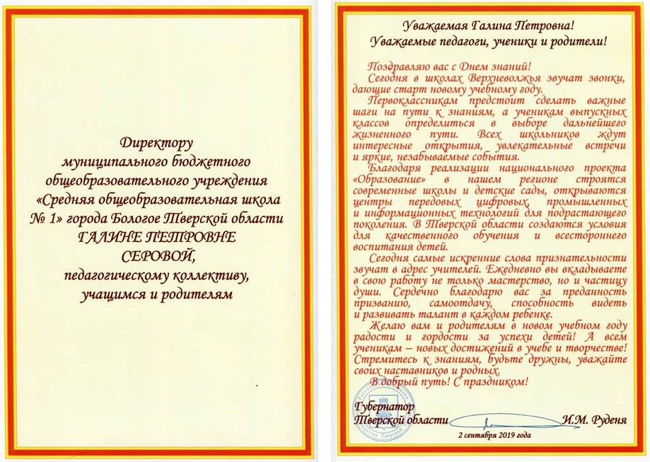 А затем школа принимала поздравления высоких гостей: Главы МО «Бологовский район» Ламака Г.А. и заместителя начальника Главного Управления архитектуры и градостроительной деятельности Яковлевой Елены Александровны.