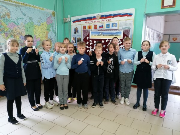 21 сентября в рамках празднования Международного «Дня мира»  в МБОУ «СОШ №1» прошла Всероссийская акция «Голубь мира».  Классные руководители рассказали ребятам об этом мероприятии. Каждый класс вырезал из белой бумаги голубей, на которых ребята написали  пожелания всем мира и добра. Затем голубей отправили в символичный полет.