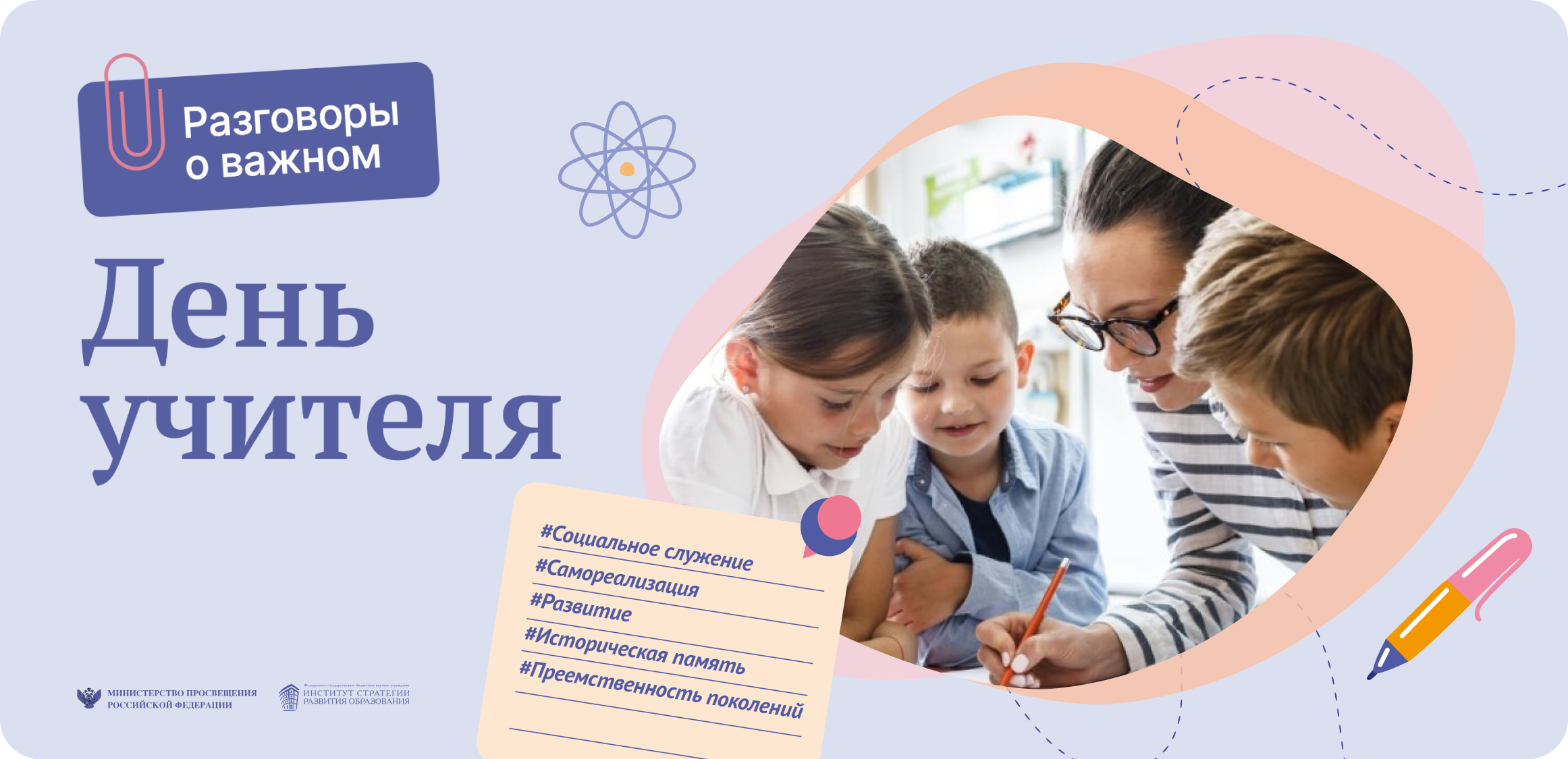 Новая учебная неделя началась с "Разговора о важном», который был посвящен самому доброму и светлому празднику - Дню учителя. Пробуждение интереса к профессии учителя, воспитание уважения к учителю, наставнику, формирование представления о роли учителя в становлении личности каждого человека стало главной целью урока.