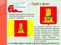 21 октября каждый год отмечают День герба и флага Тверской области. В 1996 году был принят Закон Тверской области "О гербе и флаге Тверской области", который установил официальные символы региона, их описание, а также урегулировал вопросы, связанные с их использованием.