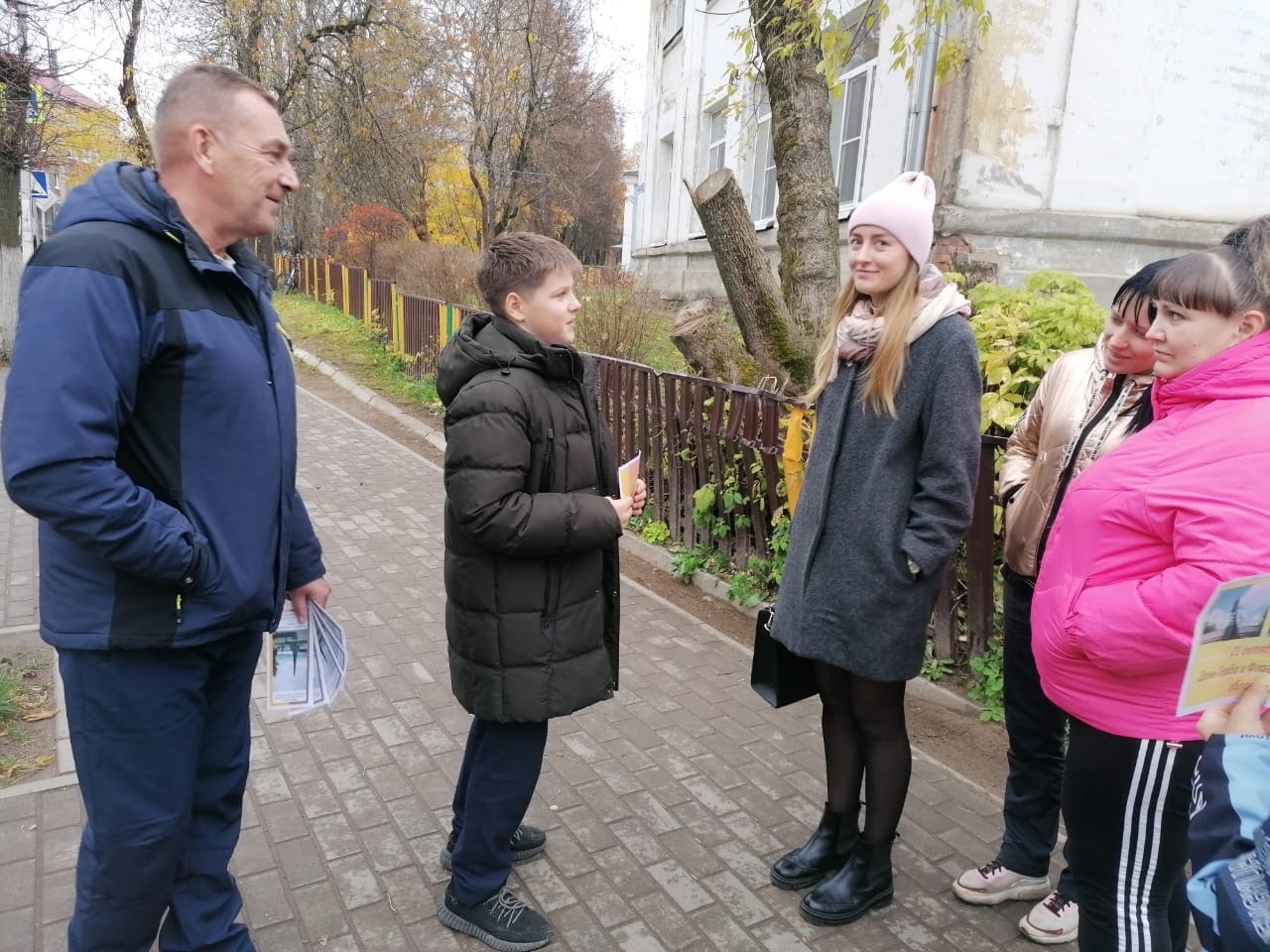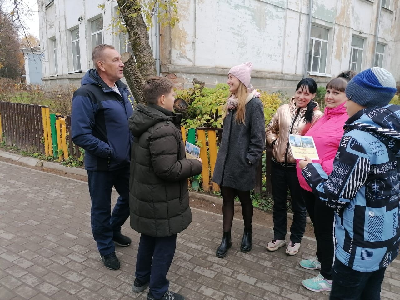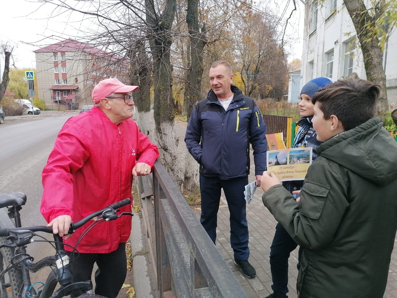 Обучающиеся 6 класса под руководством Ивановой Т.В.(руководитель школьного музея) и Захарнёва В.В.(учителя истории) провели Акцию ко Дню герба и флага Тверской области, поздравив прохожих с региональным праздником и вручив им буклеты и открытки с символикой Тверского края и интересными сведениями из истории.