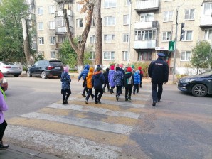 Сотрудники Госавтоинспекции рассказали ребятам, о том, как правильно осуществлять переход проезжей части по пешеходному переходу, как оборудованному кнопкой вызова с светофором, так и не регулируемому пешеходному переходу, а также разъяснили порядок перехода проезжей части при отсутствии пешеходного перехода в непосредственной близости.