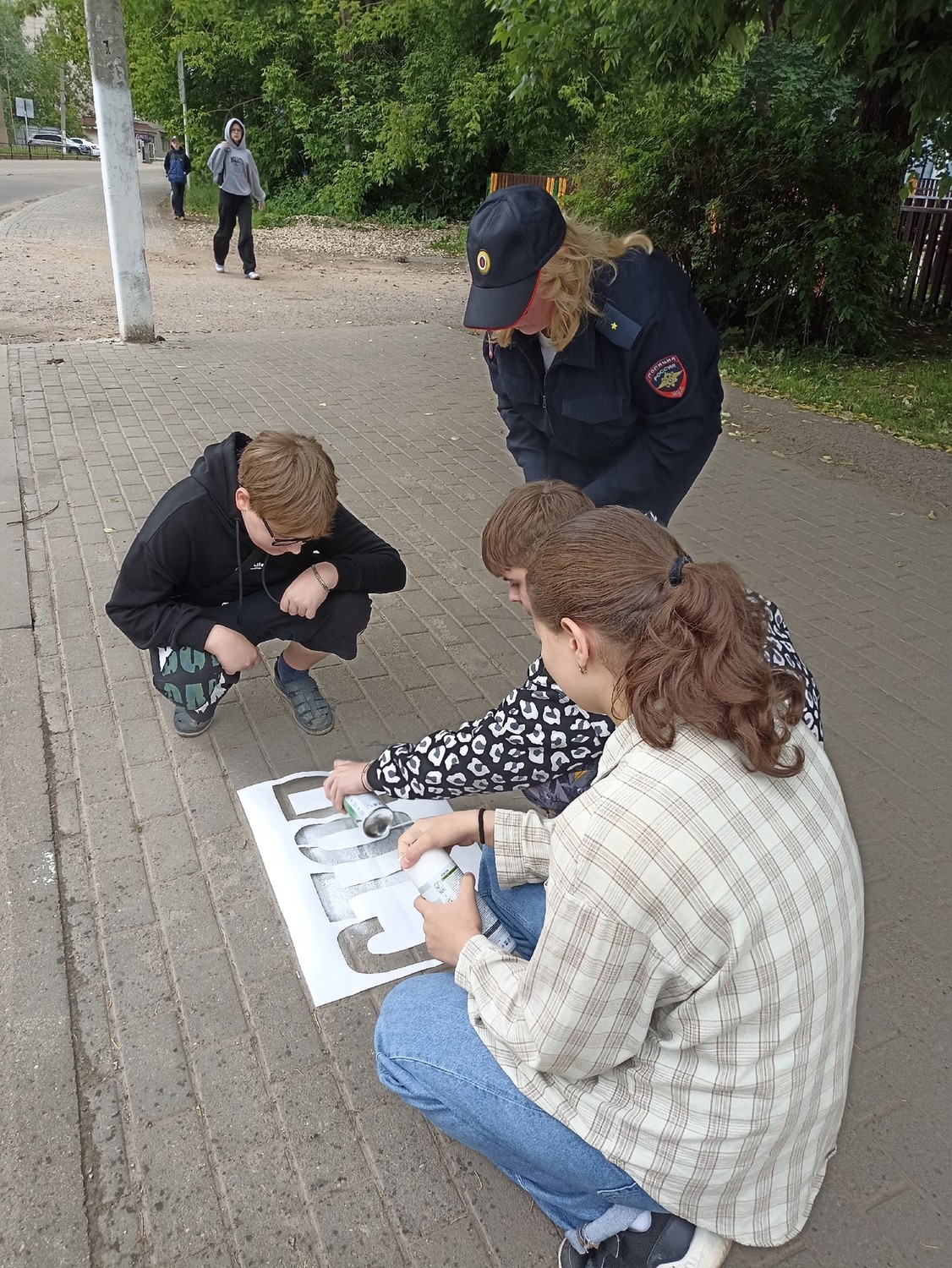 В пришкольном лагере "Победа!" сотрудники Госавтоинспекции провели акцию "ПДД на асфальте". Главной целью акции было напомнить детям и взрослым о культуре поведения на дороге.