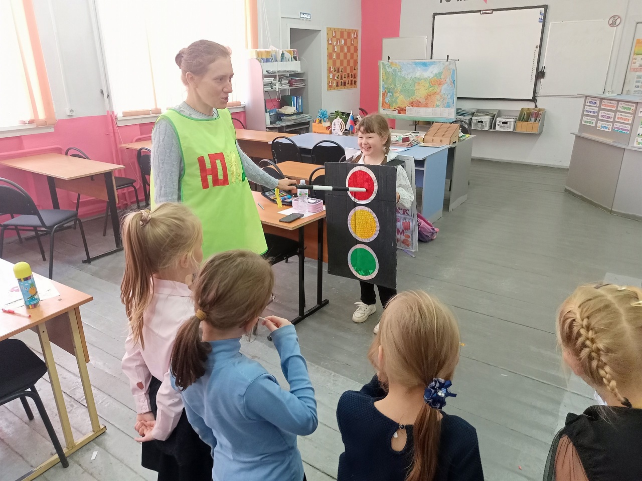 Напомнили обучающим о правилах перехода дороги по регулируемому пешеходному переходу, рассказали об опасностях, которые могут ожидать и как себя вести и чем руководствоваться.