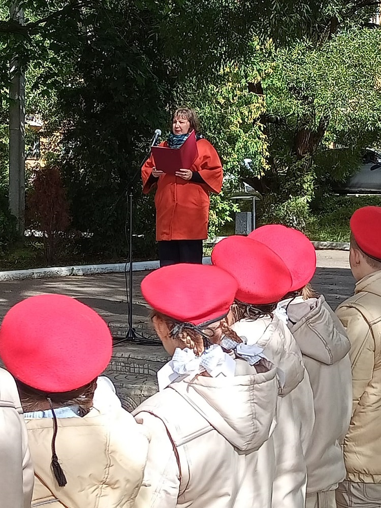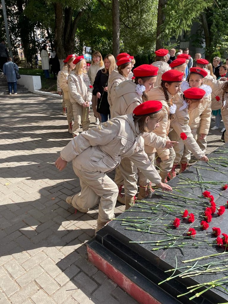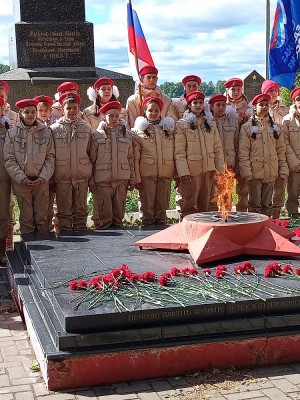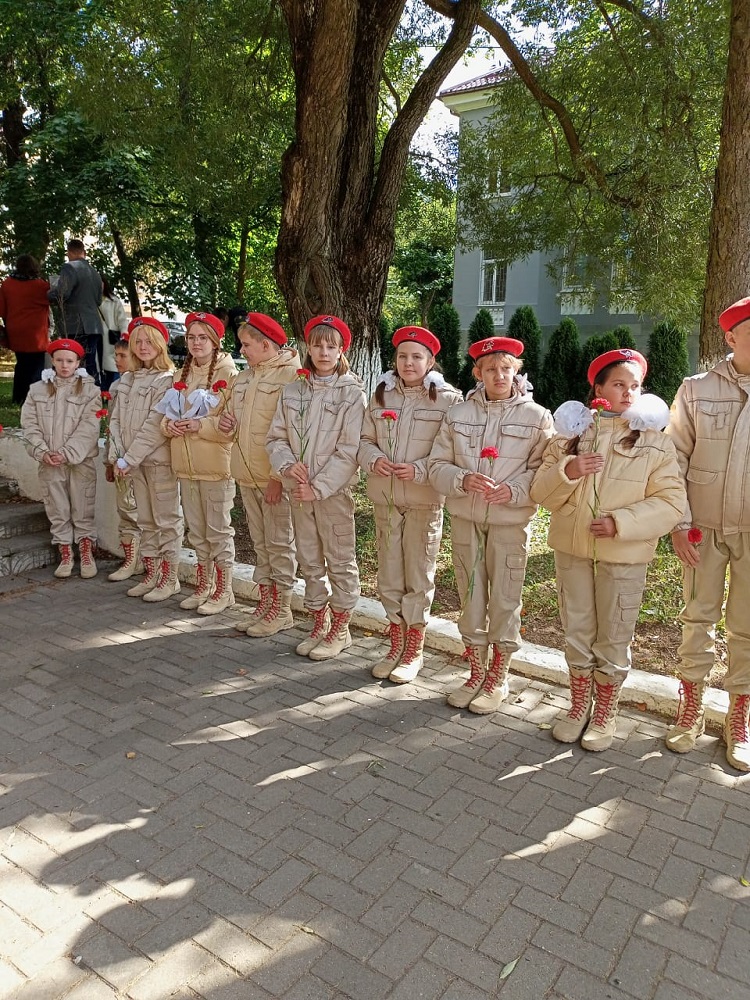 МБОУ "СОШ 1" 09 сентября 2022г. В 12:00 у Обелиска в память жителям г.Бологое, погибшим в годы ВОВ, Юнармейцы приняли участие в патриотической акции посвященной годовщине присвоения г.Бологое звания "Город трудовой доблести".