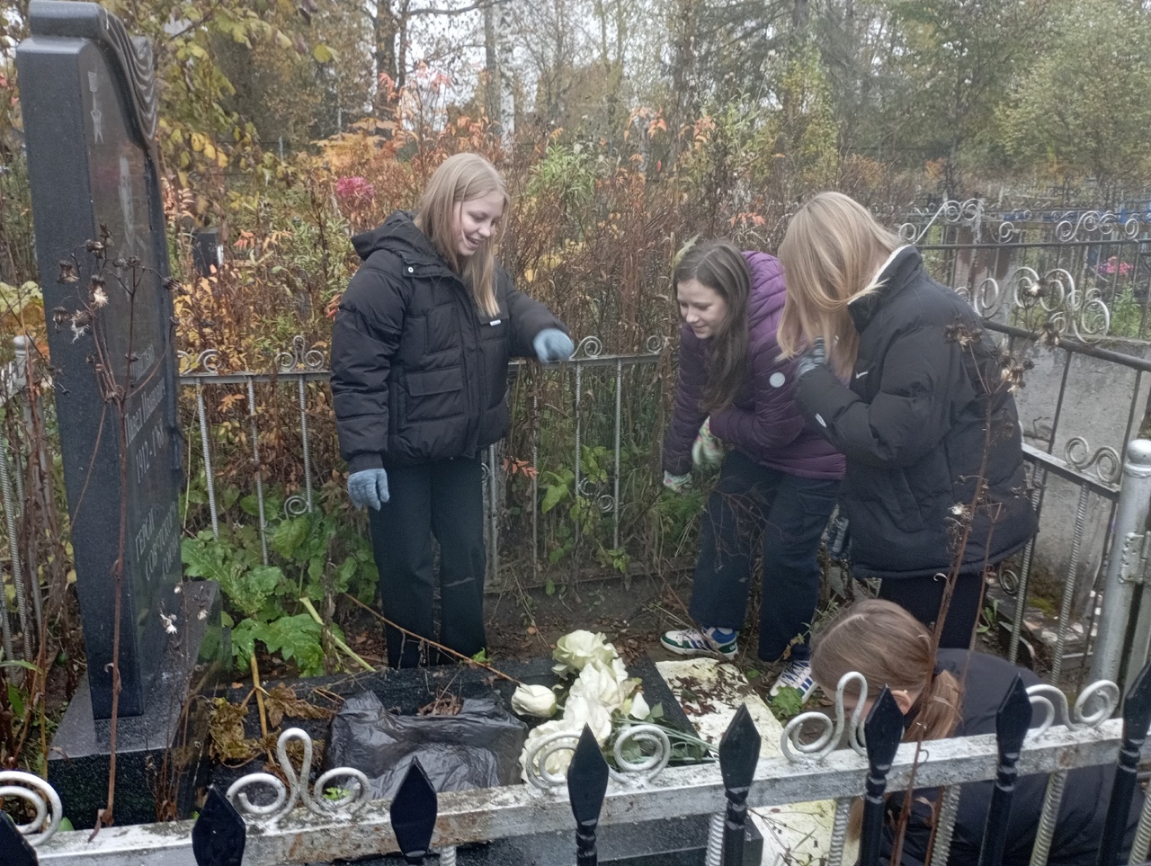 Сегодня ученики 8" Б" класса вместе с заместителем директора по воспитательной работе Лукашиной Н.А. отдали дань памяти нашим героям, совершив уборку на закреплённой за нашей школой могиле Героя Советского Союза Шпилько Павла Ивановича, а также на 2-ом братском захоронении.