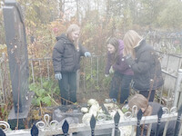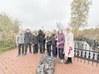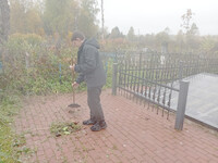Ребята с энтузиазмом, помогая друг другу, очищали территорию от старой листвы, заботливо отмывали надписи…