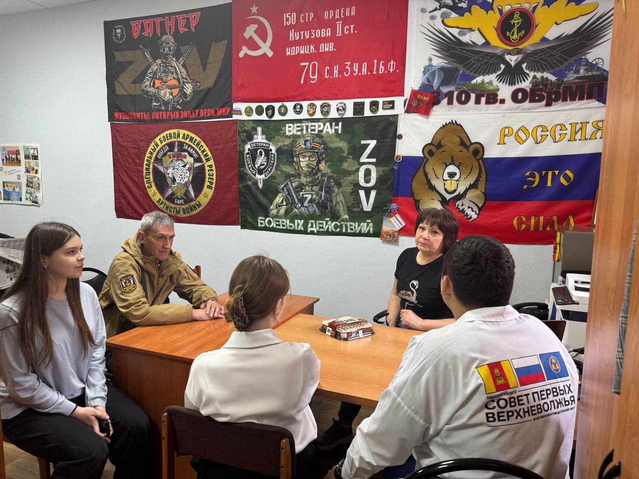 Советник директора по воспитанию, куратор первичного отделения МБОУ " СОШ № 1" Богданова Анна Владиславовна совместно с активистами школы первичного отделения Движения Первых посетили не детскую организацию, а ОО «Союз ветеранов СВО» г. Бологое.