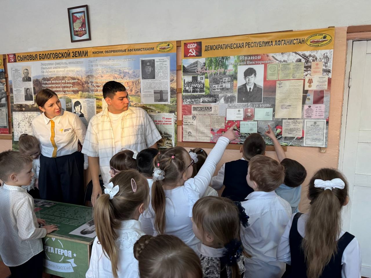 Советником директора по воспитанию и взаимодействию с детскими общественными объединениями Богдановой А.В. совместно с президентом школы, председателем первичного отделения Движения Первых Красновым Тимуром проведен Урок-мужества для обучающихся 1 «А»,1 «Б» классов. В рамках урока ребята узнали истории жизни воинов-интернационалистов, обучающихся в стенах родной школы, их подвиг и отвагу перед страной.