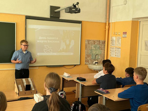 Советником директора по воспитанию и взаимодействию с детскими общественными объединениями Богдановой А.В. совместно с активном Леоновым Владиславом проведен час памяти «Прерванный урок», в рамках которого рассказано обучающимся 6 «В» класса об истории возникновения и значении памятной даты, а также о существующих традициях, приуроченных к этому дню в городах Российской Федерации.