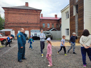 8 июля воспитанники пришкольного лагеря "Победа" посетили пожарную часть г.Бологое. Дука С.А. провел интересную экскурсию по гаражу с пожарной техникой, показал, с помощью каких инструментов сотрудники МЧС оказывают помощь пострадавшим.
