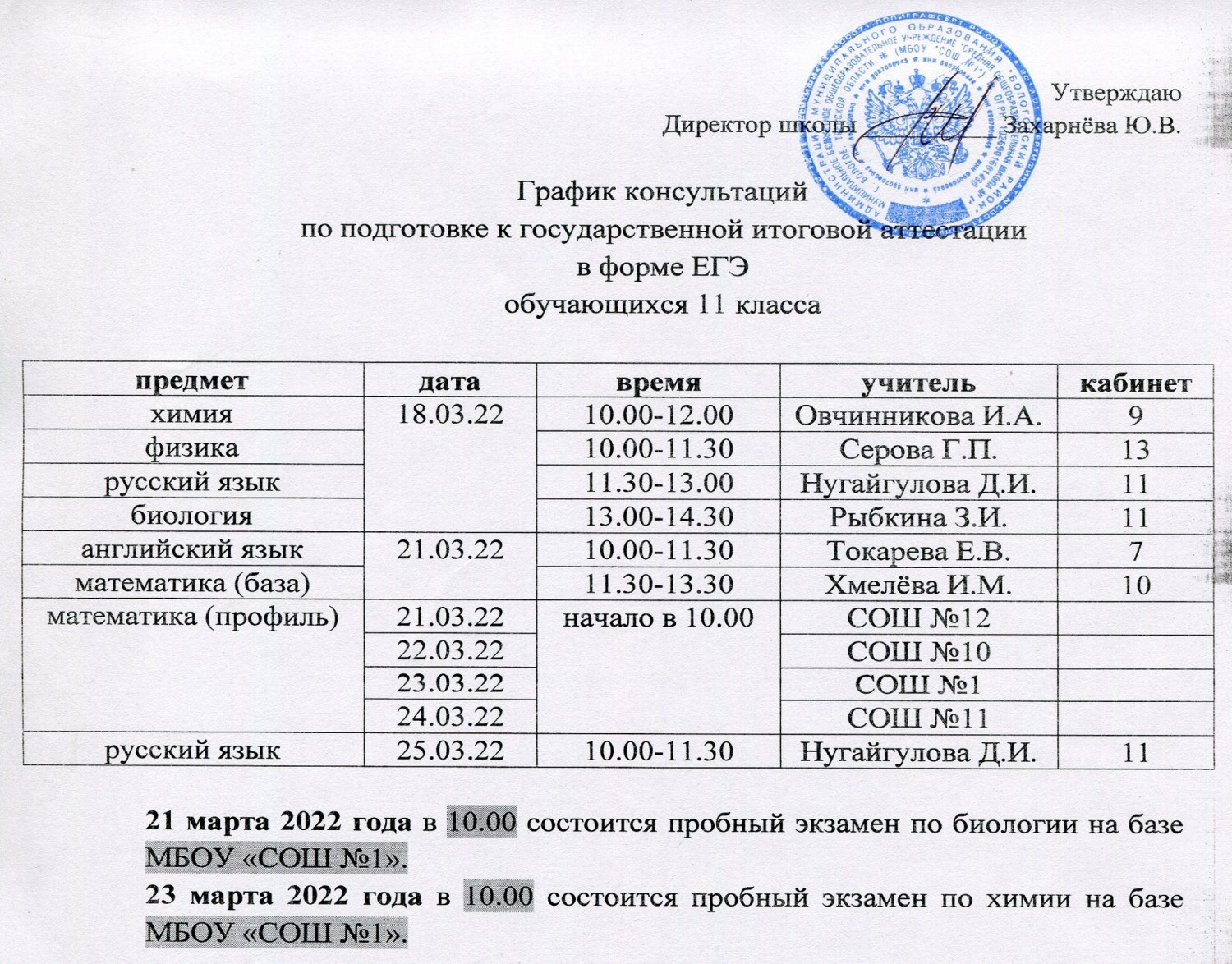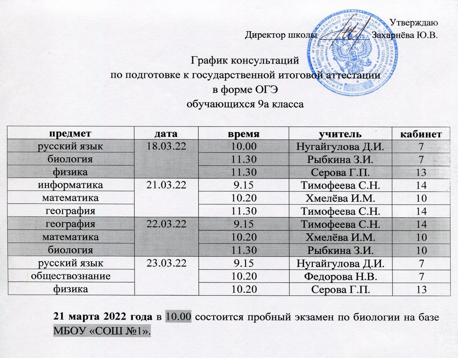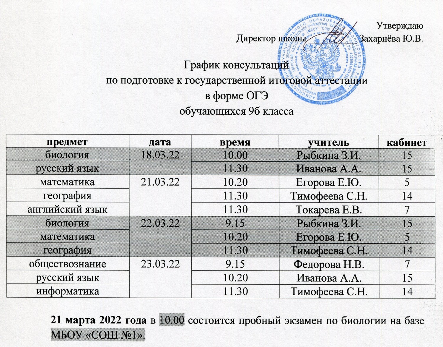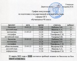 Графики консультаций по подготовке к государственной итоговой аттестации в форме ОГЭ, ЕГЭ для обучающихся 9-х и 11 классов
