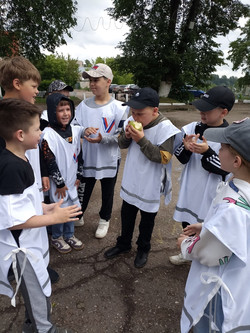 Были предложены ряд спортивных состязаний, с которыми ребята справились очень умело. Некоторые задания были необычными: съесть на время яблоко, составить по иллюстрации словесный портрет Петра l. А также ведение мяча, прыжки на скакалке, перетягивание каната, преодоление "болота", прохождение коридора из обручей и т.д.