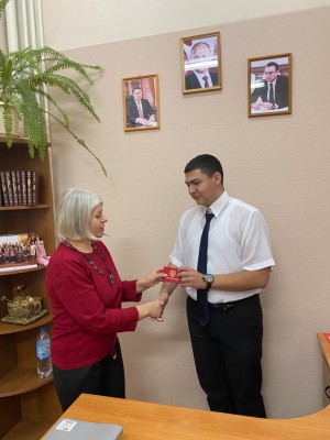 Поздравить Тимура и вручить удостоверение президента школы пришел особый гость - Шпаченко Алена Степановна, председатель территориальной избирательной комиссии Бологовского района.
