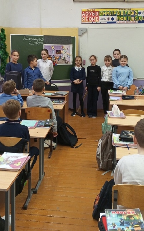 На этот раз Елена Владимировна познакомила ребят 4А, 4Б и 1Б классов со спектаклем на фланелеграфе. Ребята активно интересовались, отвечали на вопросы и даже сами смогли поучаствовать в повествовании "Истории Рождества".
