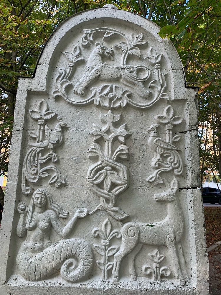 Памятник рассмотрели очень внимательно со всех сторон, обнаружили на нем как фигуры людей, так и фигуры животных,разной растительности и даже сказочных персонажей. Этот небольшой памятник очень украшает наш городок, к сожалению не нашли в этом году каштанов, но посчитали сколько деревьев в Каштановой роще!