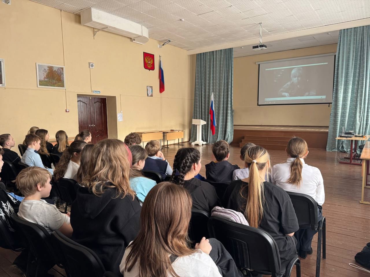В рамках кинолектория для учащихся нашей школы подготовлены список фильмов, которые помогут глубже понять историю нашей страны и почувствовать величие подвига наших предков. Сегодня учащиеся 6«А», 6«В», 7 «Б», 7«В» классов совместно с советником директора по воспитанию Богдановой А.В. и учителями истории Павловой И.М., Хованской Е.С. посмотрели фильм «Сын полка».