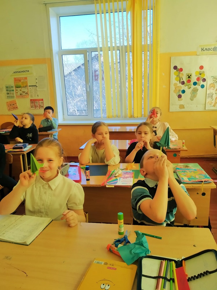 12 апреля – в День космонавтики – ребята совершили воображаемый полет на космическом корабле сквозь межзвездное пространство. Но вначале экипаж корабля прошел проверку на знание планет Солнечной системы, истории освоения космоса и познакомился с тем, как проходило детство первого космонавта, прочитав рассказы из книги В. Воскобойникова «Когда Юрий Гагарин был маленьким». Во время путешествия ребятам предстояло решить немало ребусов, космических задач и показать, какой дружной должна быть настоящая команда. На уроке изобразительного искусства каждый, проявив фантазию, нарисовал ракету, совершающую полет. А в конце недели на уроке технологии космический корабль был сконструирован и совершен его первый запуск.