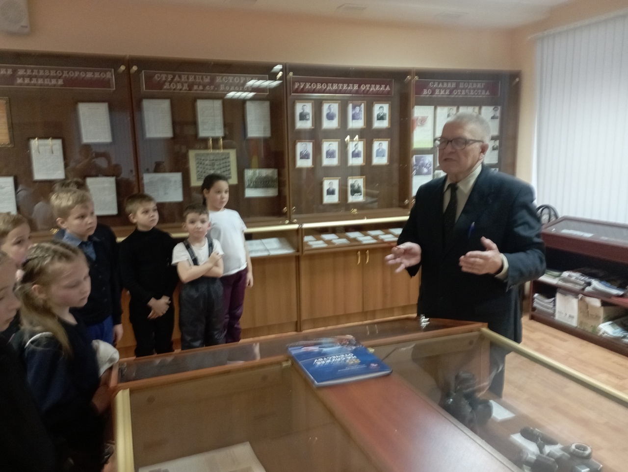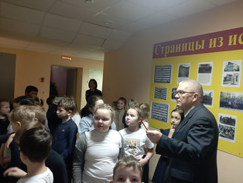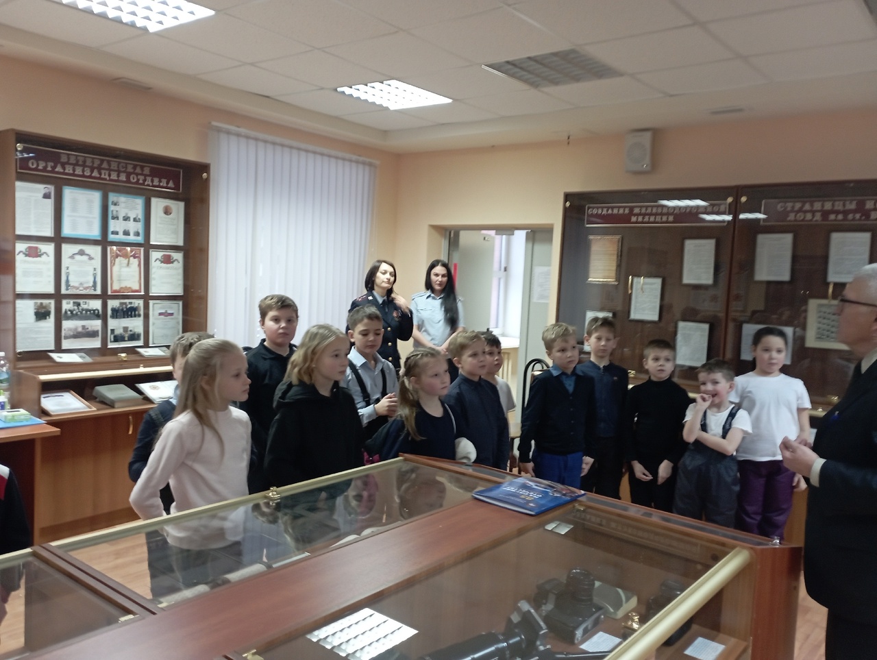 Ученики 2 "А" класса 5 февраля посетили ЛО МВД России на станции Бологое. Ребята встретились с председателем Совета ветеранов ЛО МВД России на ст. Бологое Павловым Юрием Михайловичем, который рассказал о спортивных достижениях сотрудников, об истории ЛО МВД, о героических подвигах фронтовиков и о профессиональных династиях.