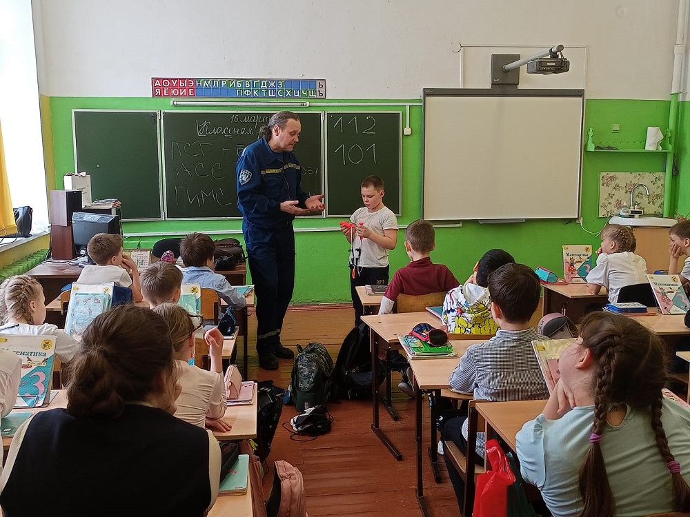 16 марта 2023г. нашу школу посетил сотрудник МЧС - начальник ПСГ г.Бологое АСС Тверской области Дубинов Г.А.