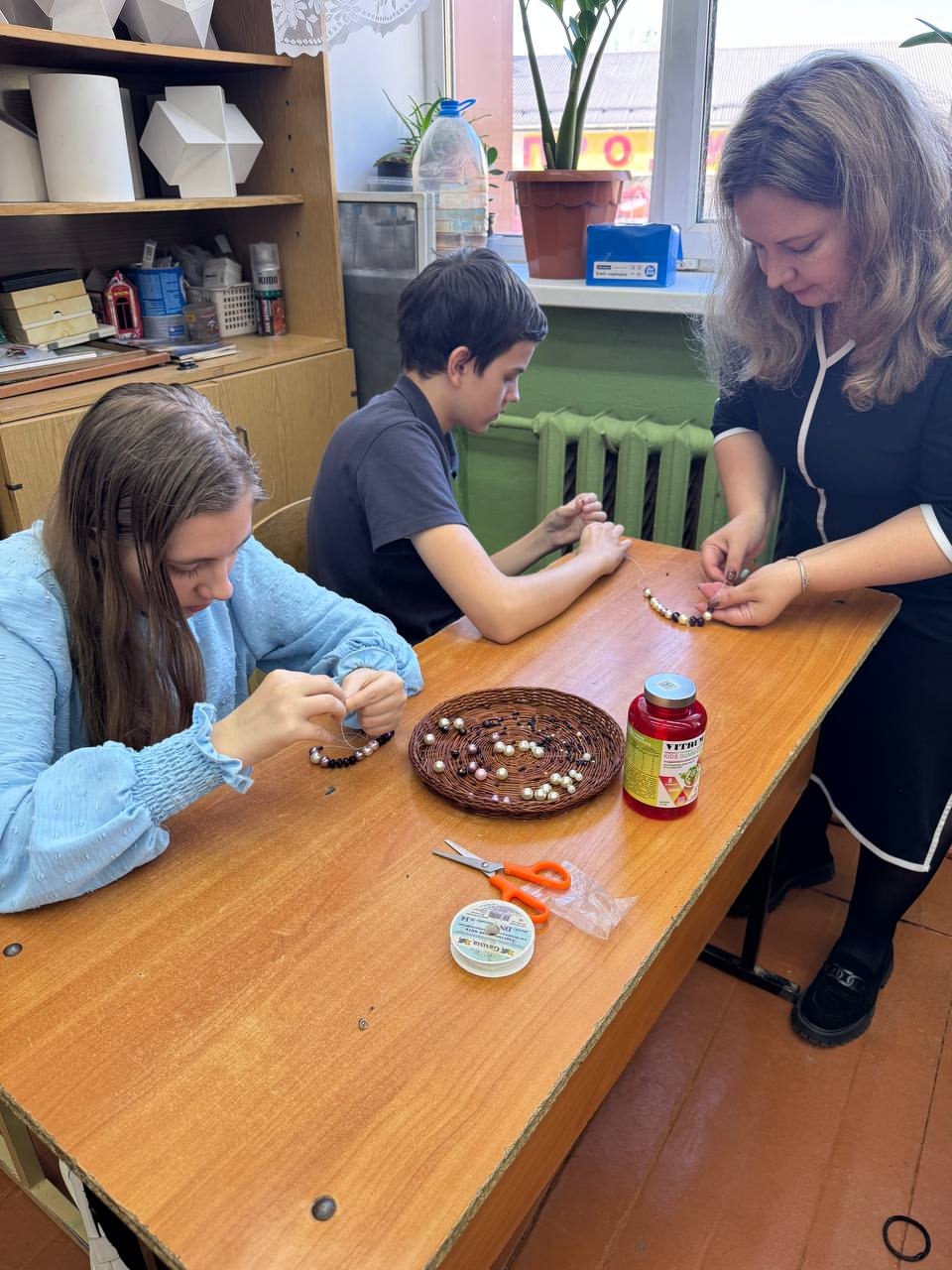 Акция направлена на укрепление межпоколенческих связей и воспитание чуткости, доброты и социальной ответственности у детей. Учащиеся 8 «А» класса создали т бусы ручной работы, которые затем будут переданы и дарены одиноким пожилым людям в дом престарелых. Это простой, но искренний жест внимания, который помогает детям научиться сопереживать, а пожилым людям — почувствовать заботу и значимость.