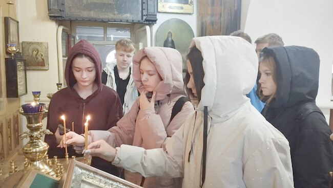 В завершение визита ребята поставили свечи перед иконами Святых и помолились.