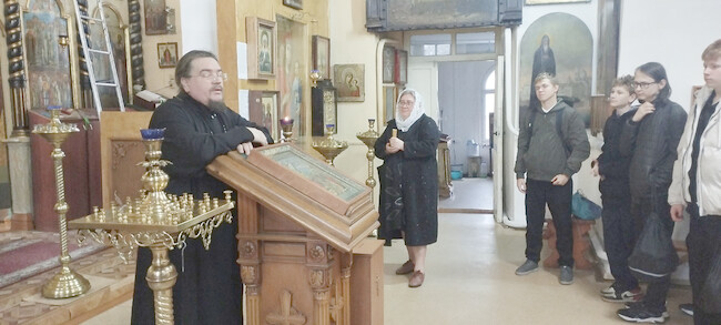 Экскурсию для школьников провел настоятель храма, протоиерей Сергий Желябовский. В ходе разговора со слушателями он разъяснил значение заповедей, рассказал о жизни Святых, изображённых на иконах, и объяснил суть обряда венчания.