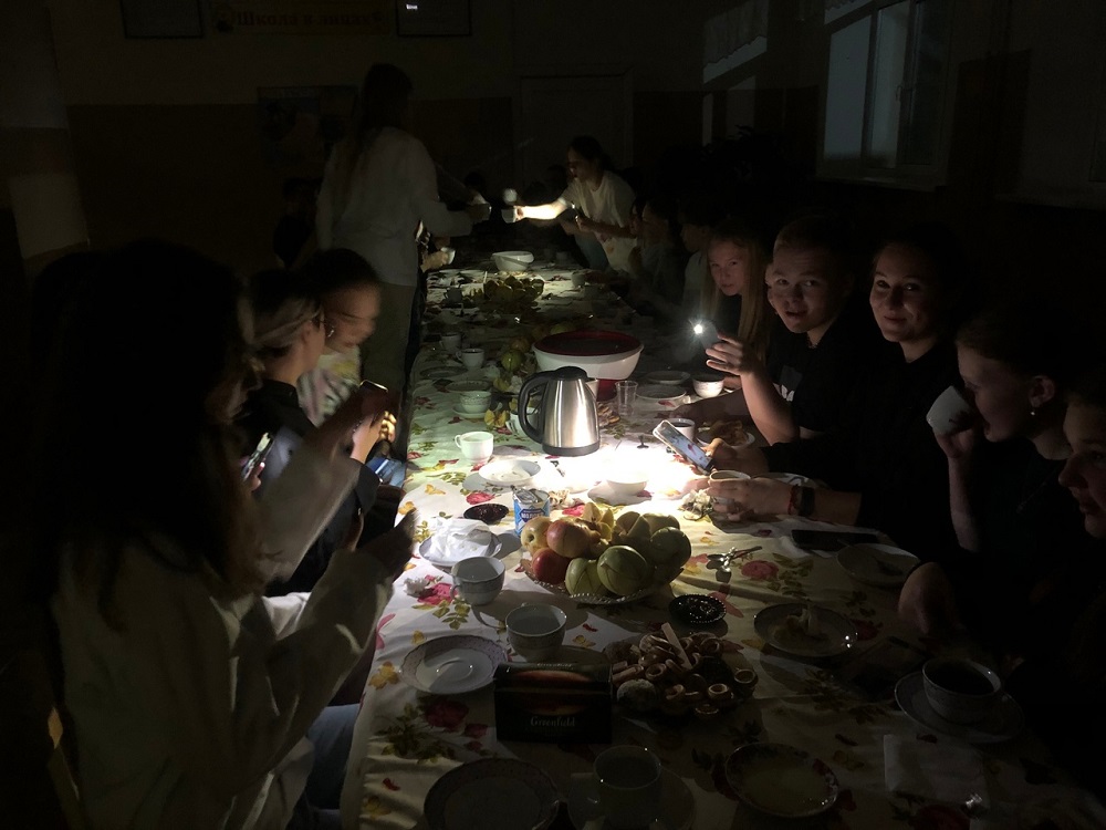 Дружно накрыли один большой стол и принялись пировать (Быстрее всего закончились оладьи)