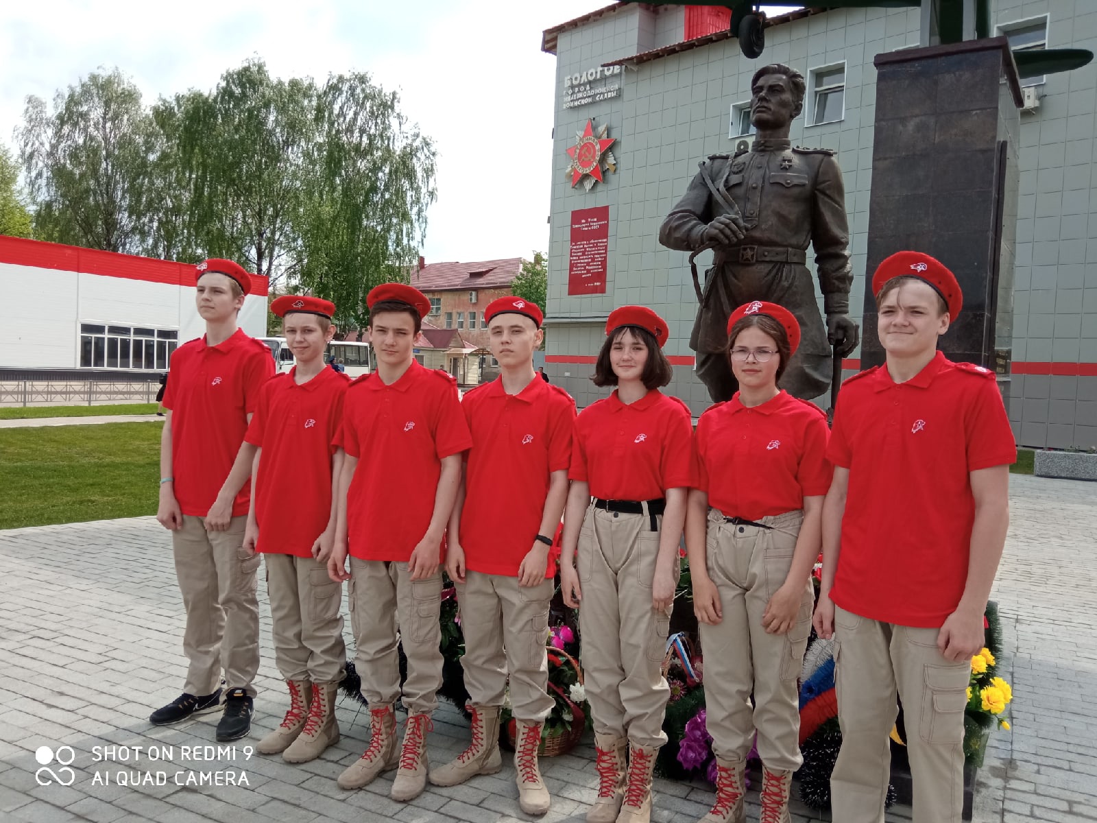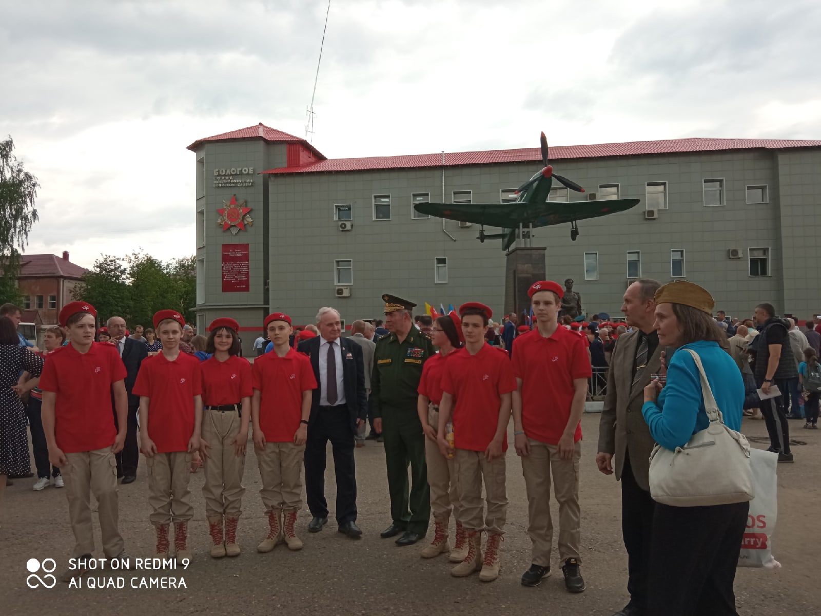 Обучающиеся нашей школы приняли активное участие в этом торжественном мероприятии. Юнармейский отряд «Юный патриот» совместно с юнармейцами других школ г. Бологое и Твери развернули Знамя Победы на бывшей Привокзальной, а ныне площади Трудовой доблести.