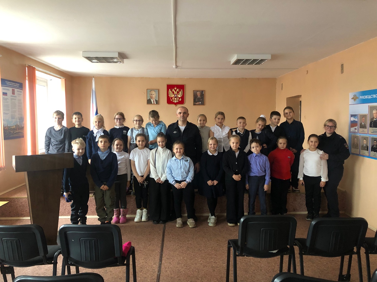 23 октября ученики 2 «Б» класса побывали на экскурсии в Отделе МВД России по Бологовскому району. Гостеприимно встретили ребят инспектор по пропаганде безопасности дорожного движения отделения Госавтоинспекции ОМВД России "Бологовский" лейтенант полиции Демиденко Анастасия Георгиевна и заместитель начальника ОМВД России "Бологовский", начальник ОРЛС подполковник полиции Дарбазанов Алихан Алаудинович.