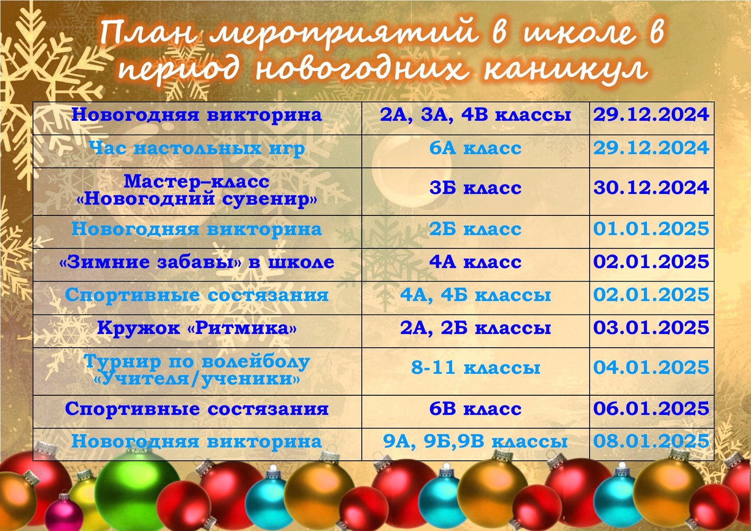 Главная » 2024 » Декабрь » 27 » План мероприятий на период зимних каникул