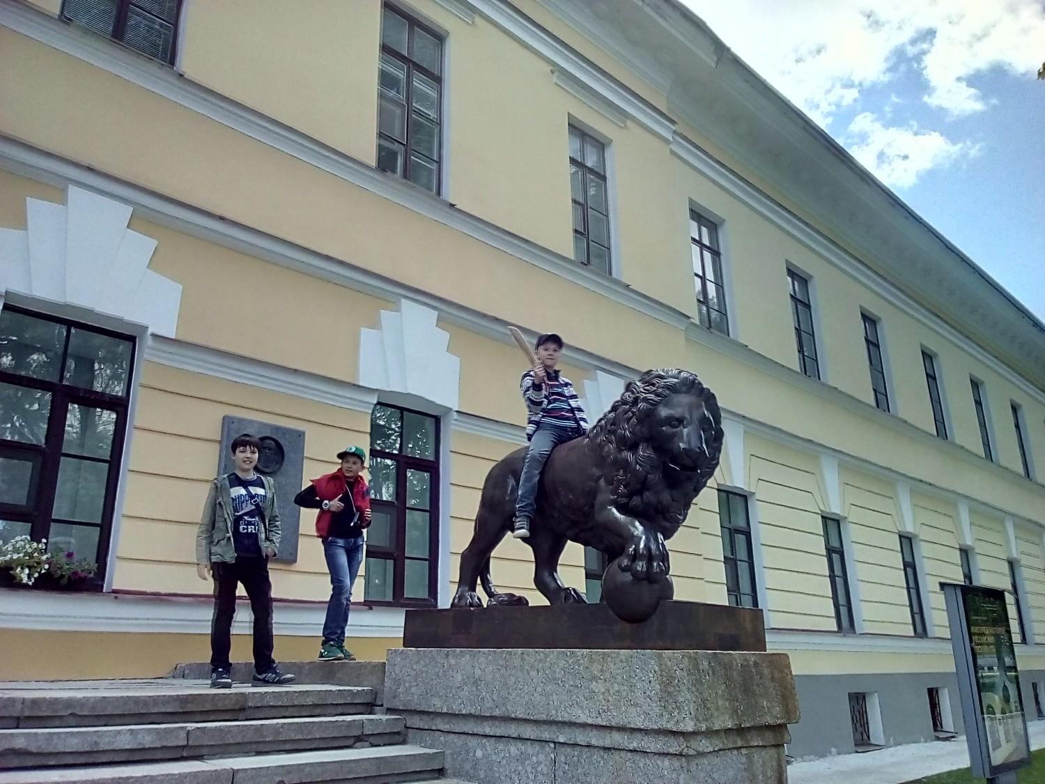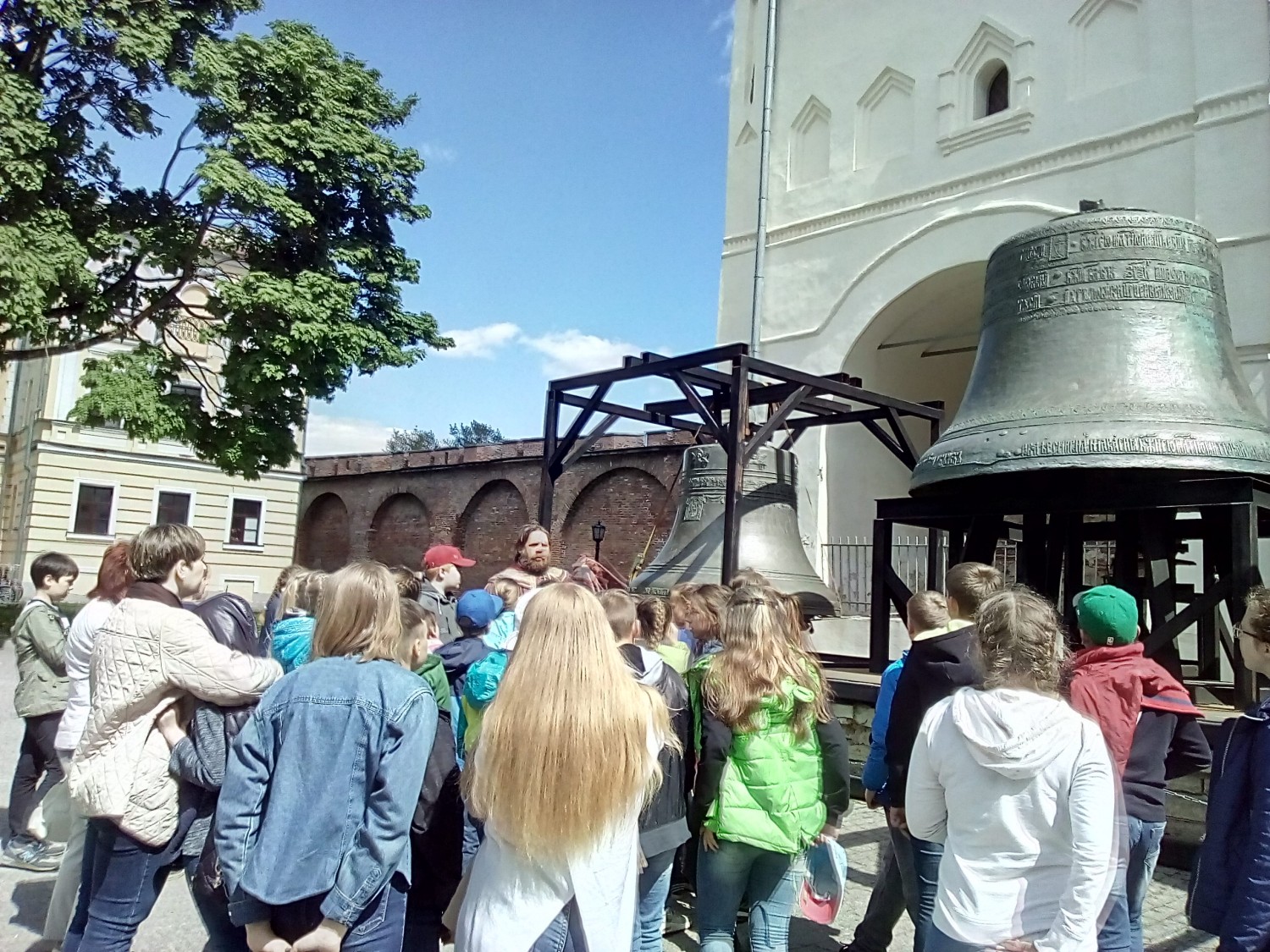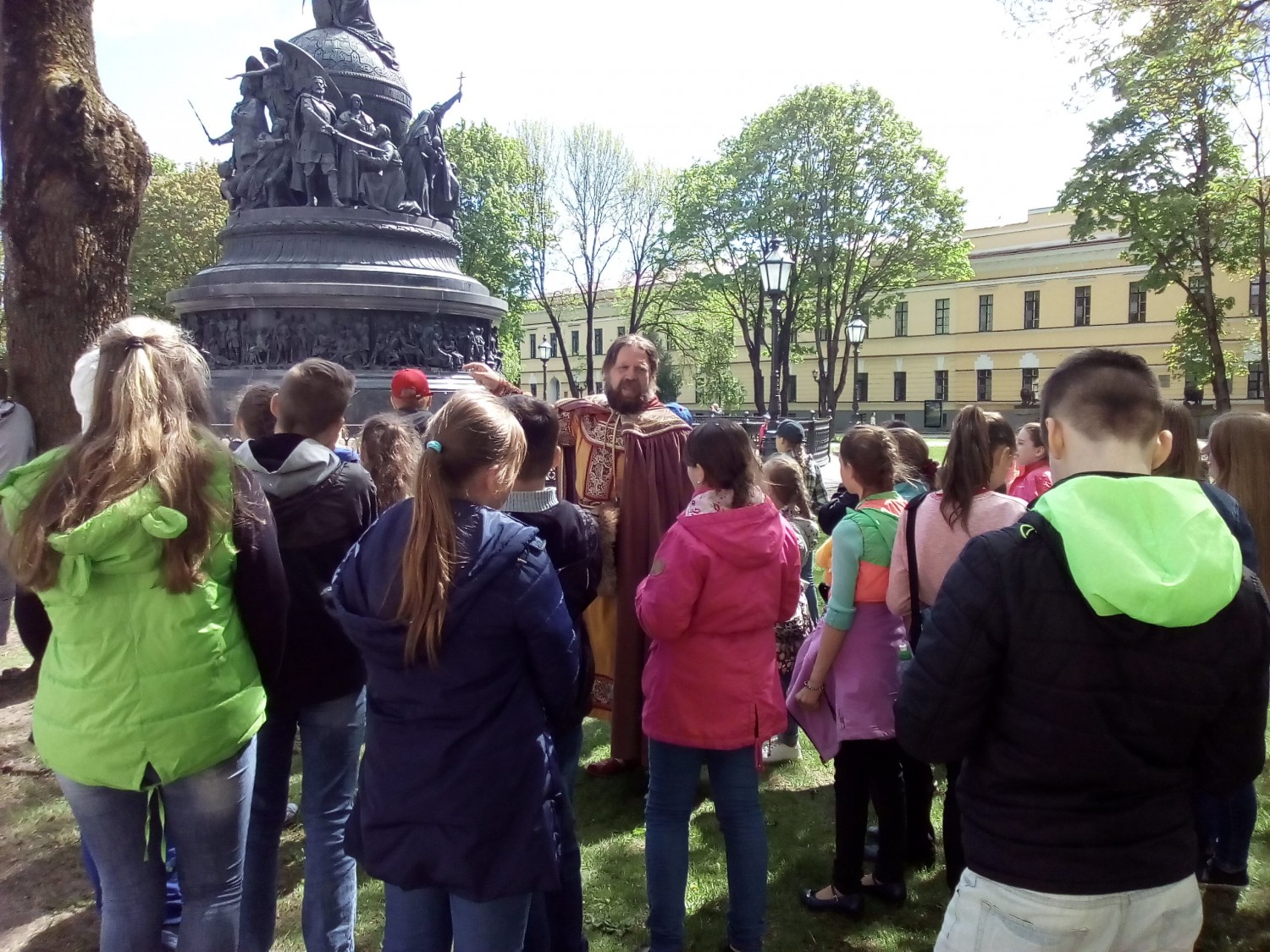 А дальше была театрализованная экскурсия «Прогулки с Посадником Сбыславом»! Неугомонная ребятня, открыв рты, слушала историю древнего новгородского Кремля, как и когда был установлен памятник тысячелетия Руси. А еще были знаменитые колокола, посещение Софийского собора и многое другое.