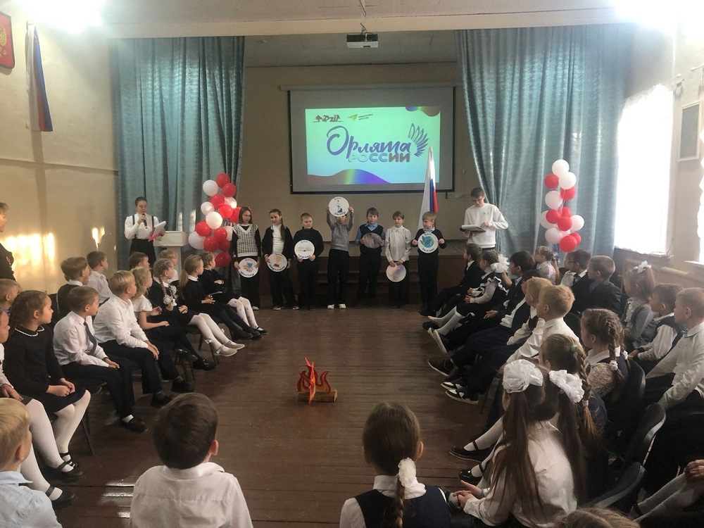 Быть «орлёнком» - не только честь, но и ответственность, это значит во всём и всегда быть впереди, воспитывать в себе любовь к Родине, трудолюбие и стремление к знаниям, честность и благородство, скромность, дисциплинированность и товарищество. Активисты «Движения первых» Демиденко Платон и Тимофеева Ульяна,как «старшие братья» познакомили ребят с красивой легендой об Орлятах, помогли отгадать загадки о треках и вручили удостоверения «Орлята России».