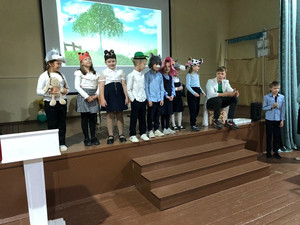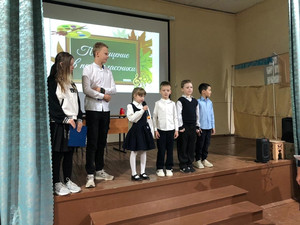 Помогли в организации мероприятия старшеклассники, ученики 8В класса и артисты театрального кружка, разыграв спектакль "Теремок".