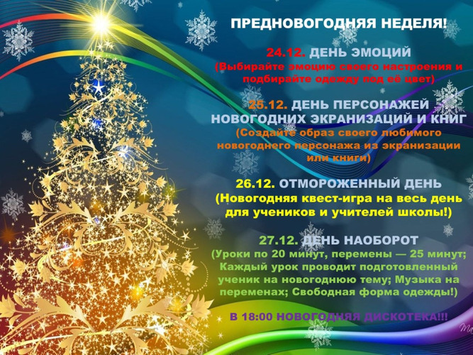 Главная » 2024 » Декабрь » 24 » Предновогодняя неделя
