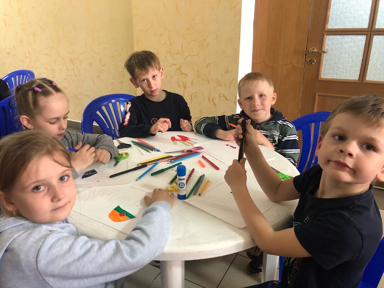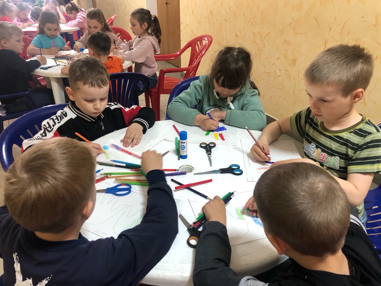 А потом у каждого отряда свой план. Первый отряд недавно побывал на мастер-классе в ЦКИДе, где своими руками под руководством взрослых, дети раскрасили, вырезали и склеили «волшебные ладошки»