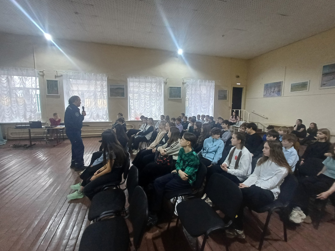 Все ребята со 2 по 11 классы послушали, как важно ценить свою жизнь и жизнь других людей. Целью таких встреч является предотвращение несчастных случаев на льду в весенний период.