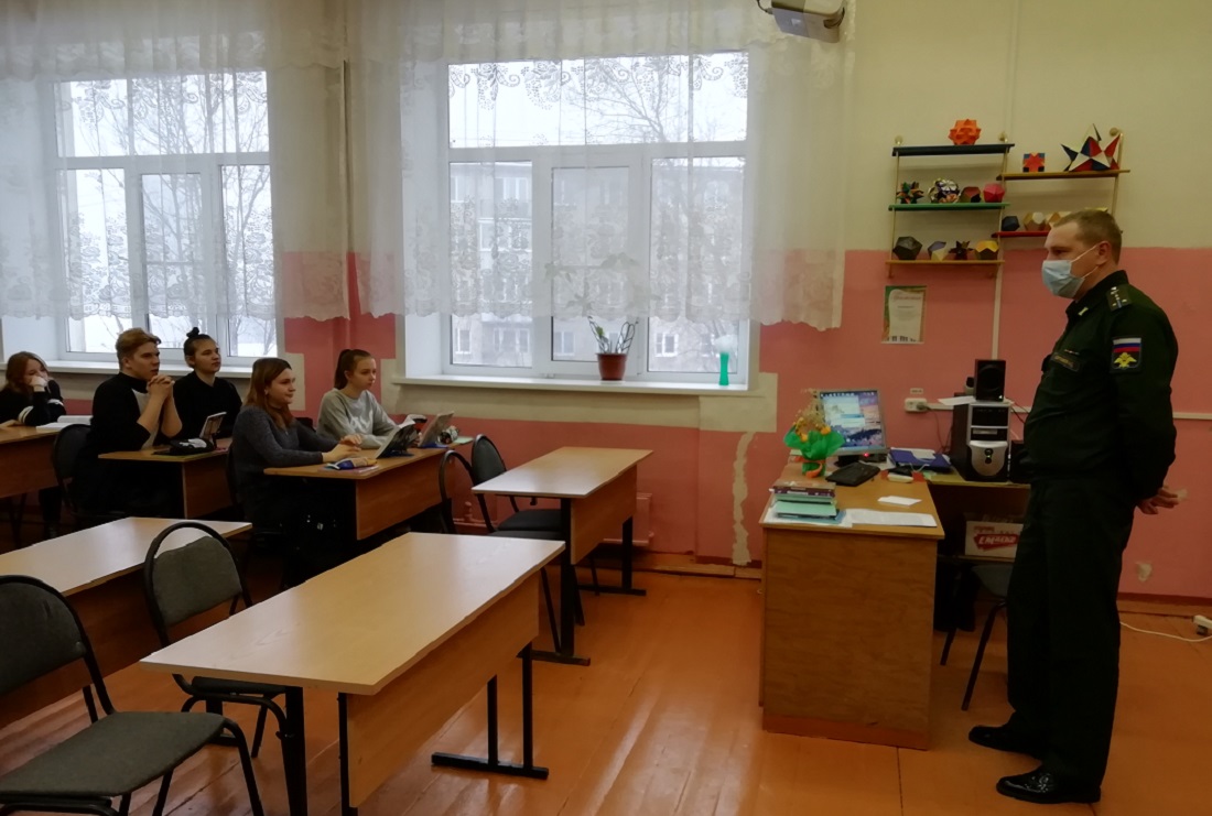 В рамках профориентационной работы в нашей школе периодически проходят беседы с обучающимися 9-11 классов. 23 ноября не стал исключением. Нашу школу посетили представители Военной академии воздушно-космической обороны им. Маршала Советского Союза Г. К. Жукова.