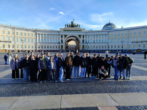 Затем ребята отправились на пешеходную экскурсию по историческому центру Санкт-Петербурга. Обнаружили в одном из двориков Литейного проспекта памятник потерянной книге, прогулялись по площади Искусств, посетили Казанский собор, насладились вкусом ленинградских пышек и завершили прогулку, конечно, на Дворцовой площади.