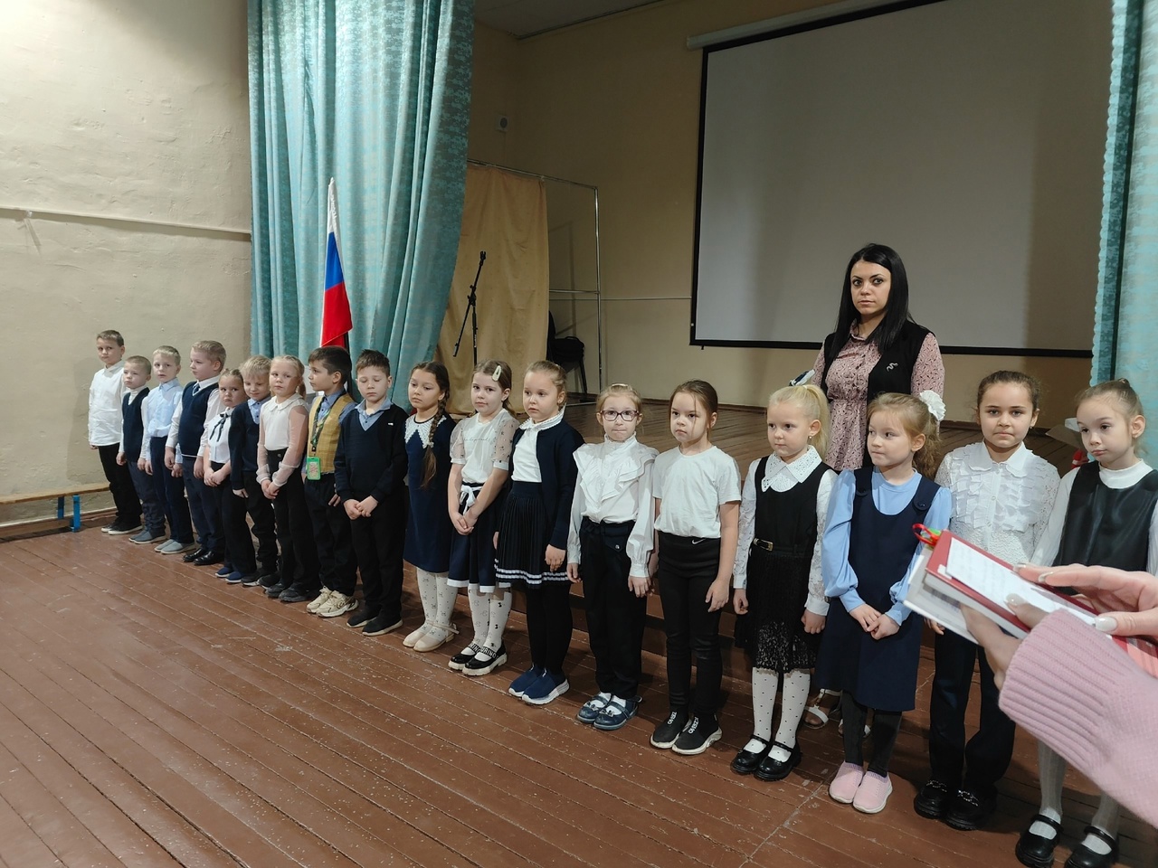 Понедельник по традиции начинается с поднятия Государственного флага и исполнения гимна Российской Федерации. Сразу после исполнения гимна во всех классах прошли уроки «Разговоры о важном».
