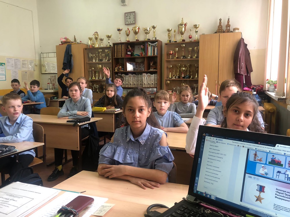 Посмотрев видеоролик, ребята познакомились с первыми Героями Труда Российской Федерации. Выполняли интерактивные задания, обсудили такие вопросы как позитивное отношение к труду, уважение к людям труда, умение честно и ответственно трудиться.