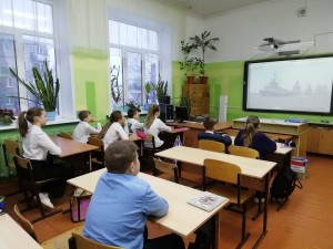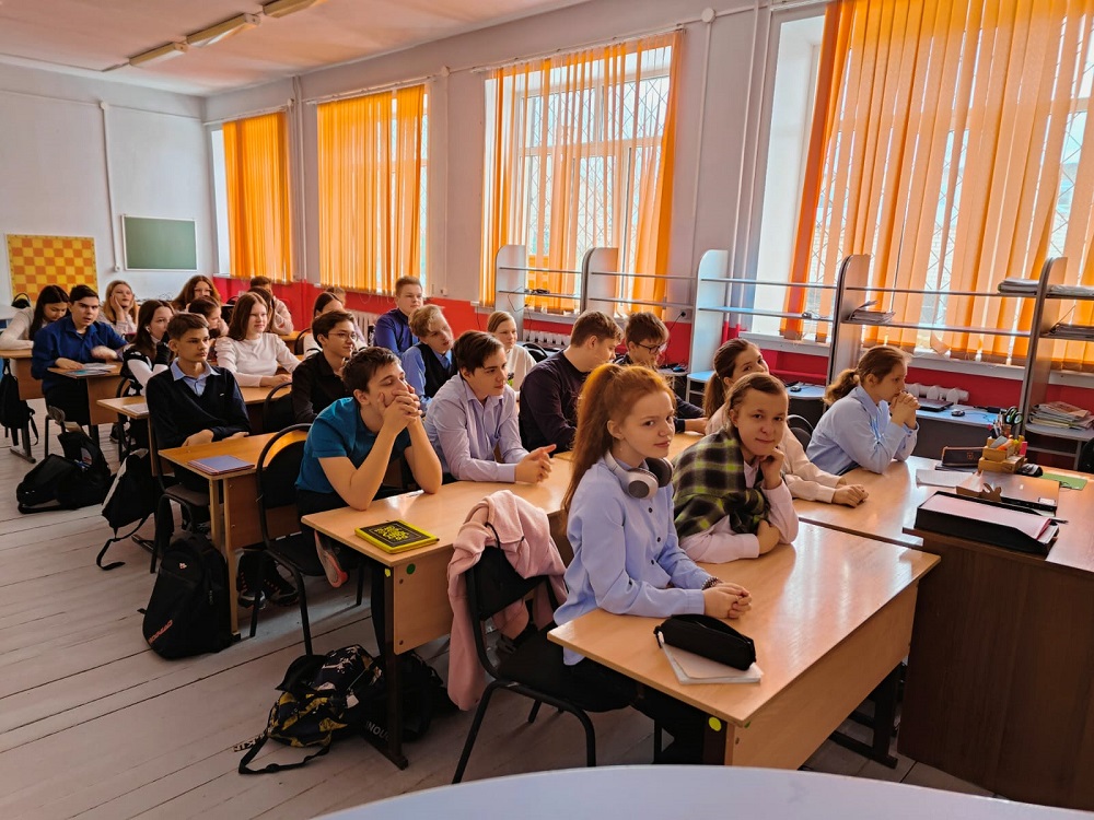 Ребята из старших классов знакомились с нынешними военными профессиями и профессиями будущего, обсудили особенности военной доктрины России, многонациональной армии России, посмотрели видеоролики и выполнили интерактивные задания.