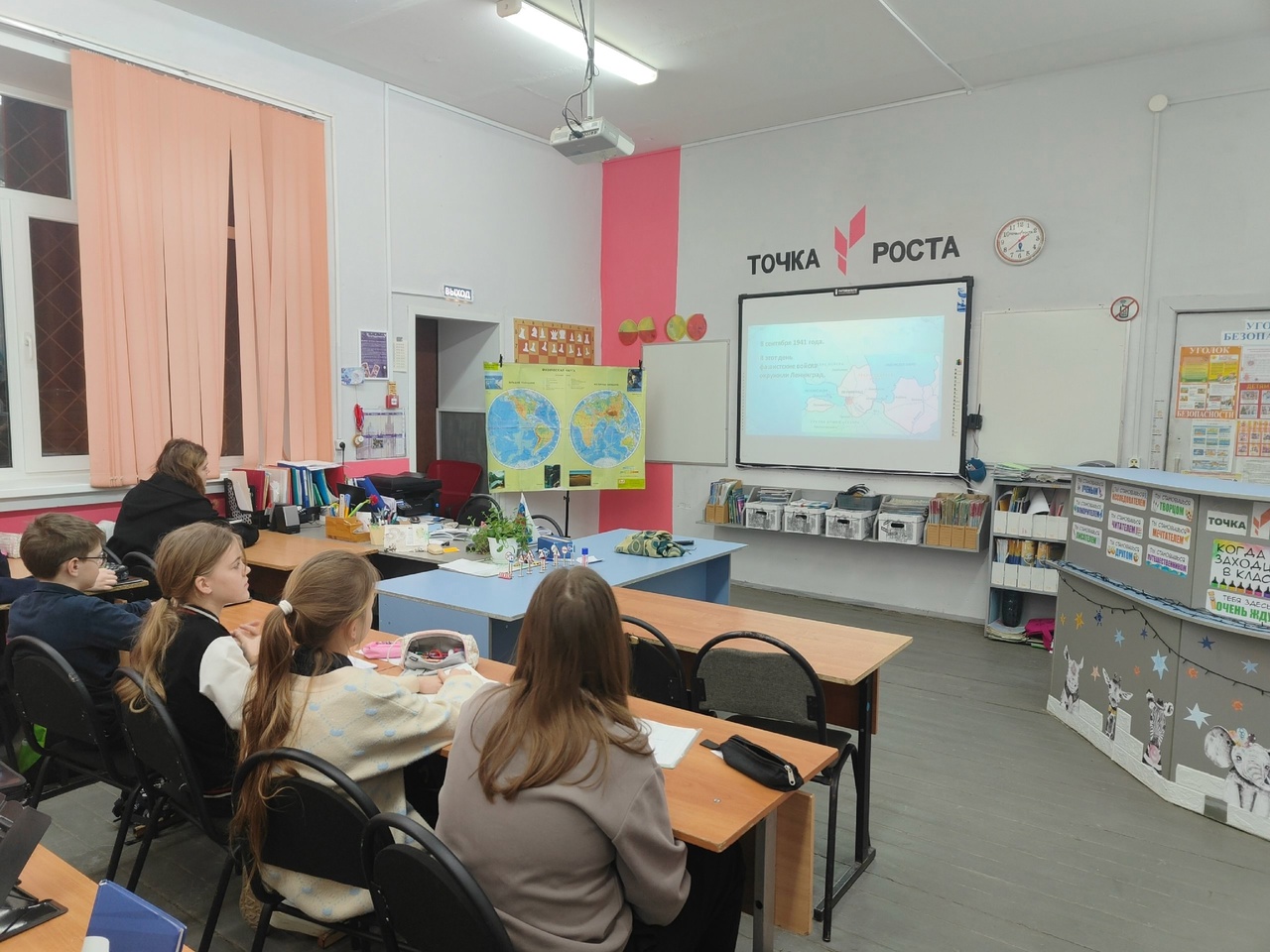 Школьникам была представлена подробная карта ключевых событий русской воинской славы, акцент был сделан на Дне снятия блокады Ленинграда и дне памяти жертв Холокоста. Заключительный этап занятия посвятили значению обелисков и мемориальных сооружений в честь защитников Родины.