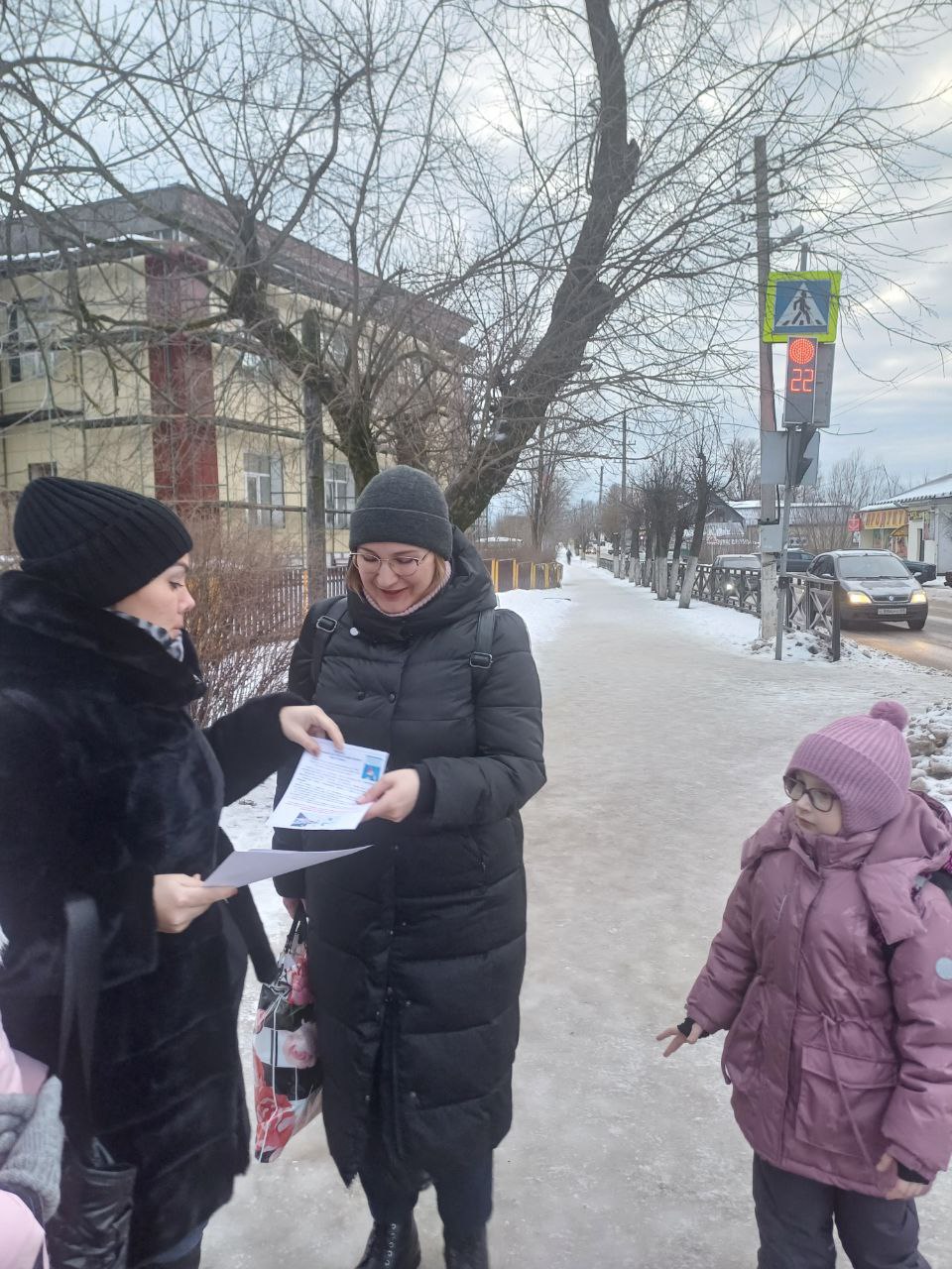 Для обеспечения безопасности детей в период проведения зимних каникул было проведёно профилактическое мероприятие "Родительский патруль" возле МБОУ "СОШ N 1". Детям и взрослым напомнили о ПДД в зимнее время и безопасности при гололёде и вручили соответствующие памятки.