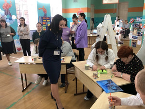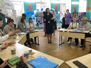 Во второй конкурсный день два испытания объединились в одно: павильон «Выставка-форум «Классный портфель достижений» и Мастер-класс.Если вы успели побывать на ВДНХ, то, наверняка, рассматривая павильон МБОУ «СОШ №1», заметите особое внешнее сходство в оформлении. Экскурсия по павильону начиналась со встречи гостей в традиционно русской манере (костюмы, угощение…).