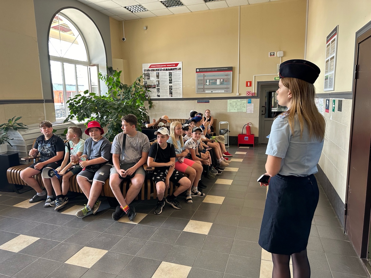 12.07.2024 года пришкольный лагерь «ШИК» посетили железнодорожный вокзал станции Бологое. Инспектор ОДН ЛО МВД России на станции Бологое Цупенкова Екатерина Владимировна рассказала ребятам о правилах поведения на железной дороге, в том числе особое внимание уделила на правила поведения при нахождении на ж.д. вокзале.